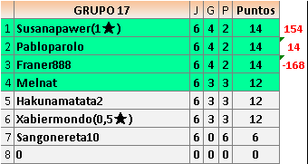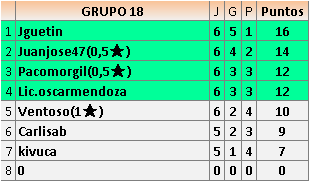 1En está página se irán publicando los resultados de las diferentes partidas, siendo ambos jugadores responsables de subirlos o de comprobar que ya hayan sido publicados insertando un COMENTARIO en la parte inferior de la pantalla (opción “Deja tu comentario”), indicando el nombre de los dos jugadores y los puntos obtenidos en la partida.