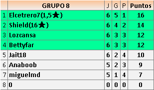 Deja un comentarioEn está página se irán publicando los resultados de las diferentes partidas, siendo ambos jugadores responsables de subirlos o de comprobar que ya hayan sido publicados insertando un COMENTARIO en la parte inferior de la pantalla (opción “Deja tu comentario”), indicando el nombre de los dos jugadores y los puntos obtenidos en la partida.