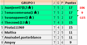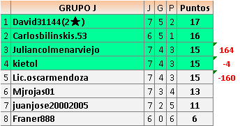 6En está página se irán publicando los resultados de las diferentes partidas, siendo ambos jugadores responsables de subirlos o de comprobar que ya hayan sido publicados insertando un COMENTARIO en la parte inferior de la pantalla (opción “Deja tu comentario”), indicando el nombre de los dos jugadores y los puntos obtenidos en la partida.