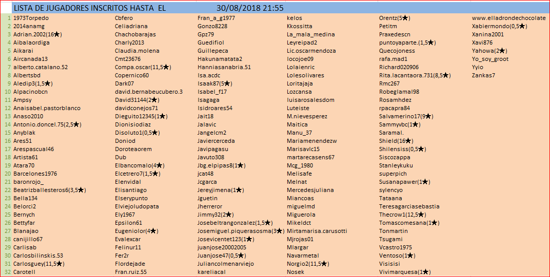 HASTA EL 15 DE ENERO O UN TOPE DE 80 JUGADORES