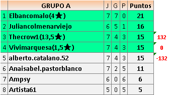 Deja un comentarioEn está página se irán publicando los resultados de las diferentes partidas, siendo ambos jugadores responsables de subirlos o de comprobar que ya hayan sido publicados insertando un COMENTARIO en la parte inferior de la pantalla (opción “Deja tu comentario”), indicando el nombre de los dos jugadores y los puntos obtenidos en la partida.