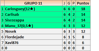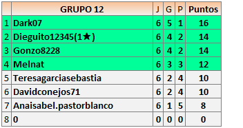 Deja un comentarioEn está página se irán publicando los resultados de las diferentes partidas, siendo ambos jugadores responsables de subirlos o de comprobar que ya hayan sido publicados insertando un COMENTARIO en la parte inferior de la pantalla (opción “Deja tu comentario”), indicando el nombre de los dos jugadores y los puntos obtenidos en la partida.