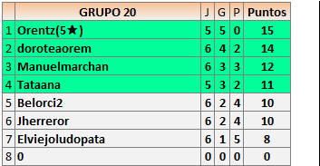 Respecto a la jornada 5 del grupo 20, La Organización decide dar la partida como no jugada, puesto que según los comentarios enviados por los jugadores no es culpa de “nadie” no haber acabado en plazo, pero a la vez no hemos visto un interés real en acabar la partida, puesto que 12 horas después de vuestro último comentario la partida no nos consta como acabada.
