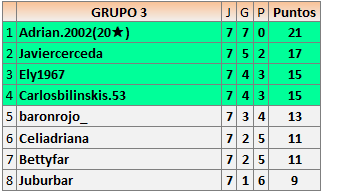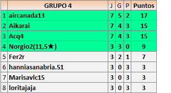 Deja un comentarioEn está página se irán publicando los resultados de las diferentes partidas, siendo ambos jugadores responsables de subirlos o de comprobar que ya hayan sido publicados insertando un COMENTARIO en la parte inferior de la pantalla (opción “Deja tu comentario”), indicando el nombre de los dos jugadores y los puntos obtenidos en la partida.