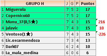 En está página se irán publicando los resultados de las diferentes partidas, siendo ambos jugadores responsables de subirlos o de comprobar que ya hayan sido publicados insertando un COMENTARIO en la parte inferior de la pantalla (opción “Deja tu comentario”), indicando el nombre de los dos jugadores y los puntos obtenidos en la partida.