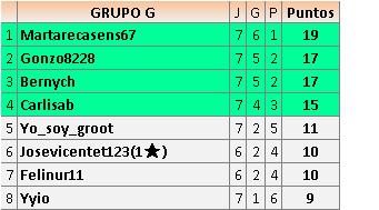 2En está página se irán publicando los resultados de las diferentes partidas, siendo ambos jugadores responsables de subirlos o de comprobar que ya hayan sido publicados insertando un COMENTARIO en la parte inferior de la pantalla (opción “Deja tu comentario”), indicando el nombre de los dos jugadores y los puntos obtenidos en la partida.