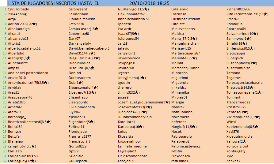 HASTA EL 15 DE ENERO O UN TOPE DE 80 JUGADORES