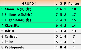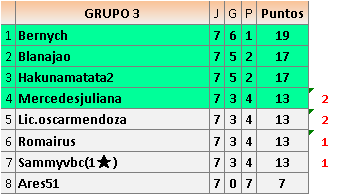 Deja un comentarioEn está página se irán publicando los resultados de las diferentes partidas, siendo ambos jugadores responsables de subirlos o de comprobar que ya hayan sido publicados insertando un COMENTARIO en la parte inferior de la pantalla (opción “Deja tu comentario”), indicando el nombre de los dos jugadores y los puntos obtenidos en la partida.