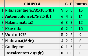 Deja un comentarioEn está página se irán publicando los resultados de las diferentes partidas, siendo ambos jugadores responsables de subirlos o de comprobar que ya hayan sido publicados insertando un COMENTARIO en la parte inferior de la pantalla (opción “Deja tu comentario”), indicando el nombre de los dos jugadores y los puntos obtenidos en la partida.