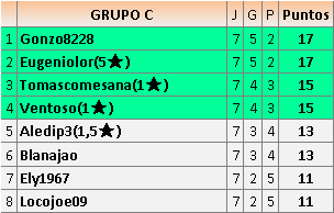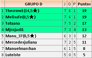 Deja un comentarioEn está página se irán publicando los resultados de las diferentes partidas, siendo ambos jugadores responsables de subirlos o de comprobar que ya hayan sido publicados insertando un COMENTARIO en la parte inferior de la pantalla (opción “Deja tu comentario”), indicando el nombre de los dos jugadores y los puntos obtenidos en la partida.