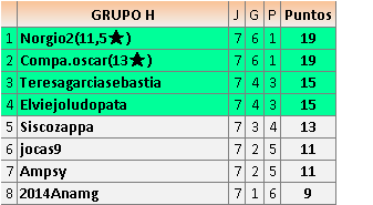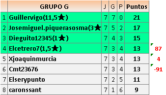 Deja un comentarioEn está página se irán publicando los resultados de las diferentes partidas, siendo ambos jugadores responsables de subirlos o de comprobar que ya hayan sido publicados insertando un COMENTARIO en la parte inferior de la pantalla (opción “Deja tu comentario”), indicando el nombre de los dos jugadores y los puntos obtenidos en la partida.