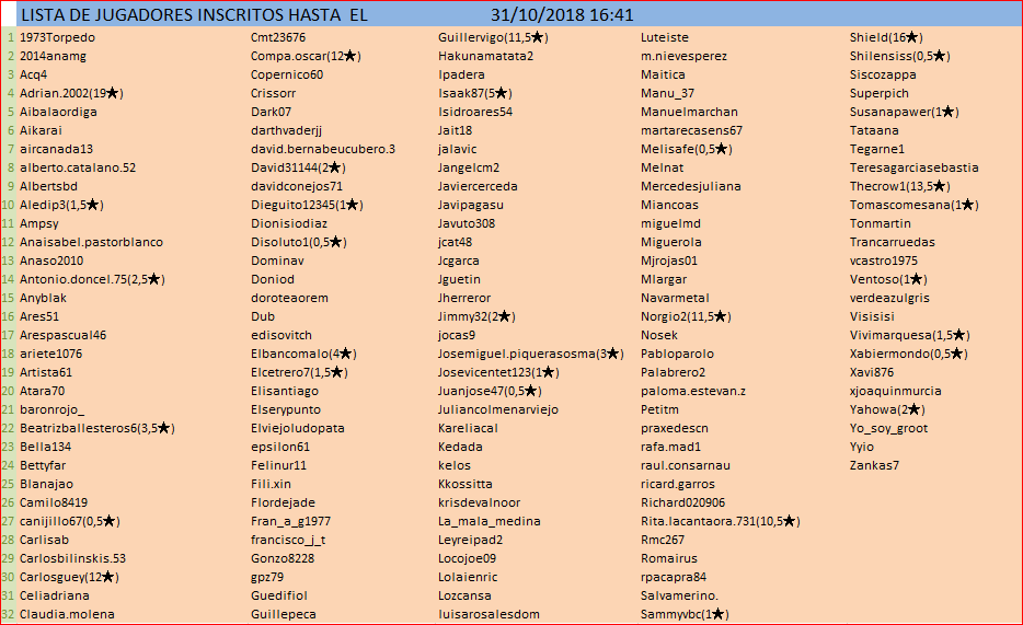 Deja un comentarioInicio de torneo: 1 Noviembre