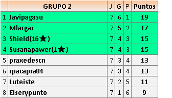 Deja un comentarioEn está página se irán publicando los resultados de las diferentes partidas, siendo ambos jugadores responsables de subirlos o de comprobar que ya hayan sido publicados insertando un COMENTARIO en la parte inferior de la pantalla (opción “Deja tu comentario”), indicando el nombre de los dos jugadores y los puntos obtenidos en la partida.