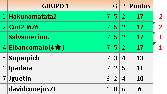Deja un comentarioEn está página se irán publicando los resultados de las diferentes partidas, siendo ambos jugadores responsables de subirlos o de comprobar que ya hayan sido publicados insertando un COMENTARIO en la parte inferior de la pantalla (opción “Deja tu comentario”), indicando el nombre de los dos jugadores y los puntos obtenidos en la partida.