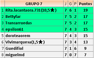 En está página se irán publicando los resultados de las diferentes partidas, siendo ambos jugadores responsables de subirlos o de comprobar que ya hayan sido publicados insertando un COMENTARIO en la parte inferior de la pantalla (opción “Deja tu comentario”), indicando el nombre de los dos jugadores y los puntos obtenidos en la partida.