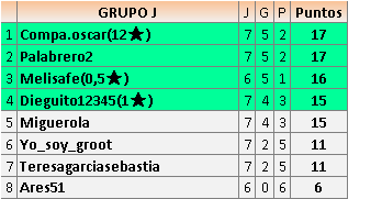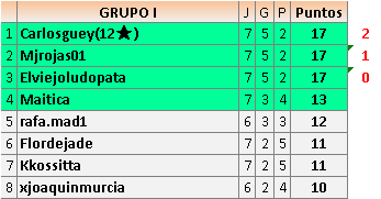 En está página se irán publicando los resultados de las diferentes partidas, siendo ambos jugadores responsables de subirlos o de comprobar que ya hayan sido publicados insertando un COMENTARIO en la parte inferior de la pantalla (opción “Deja tu comentario”), indicando el nombre de los dos jugadores y los puntos obtenidos en la partida.