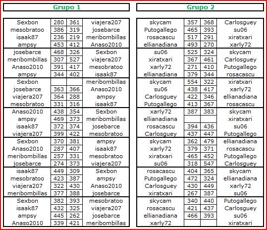 Deja un comentarioEn está página se irán publicando los resultados de las diferentes partidas, siendo el vencedor el encargado de hacerlo, insertando un COMENTARIO en la parte inferior de la pantalla (opción «Deja tu comentario«), indicando el nombre de los dos jugadores y los puntos obtenidos en la partida.