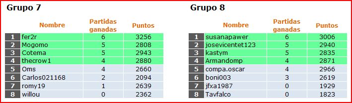 Deja un comentarioEn está página se irán publicando los resultados de las diferentes partidas, siendo el vencedor el encargado de hacerlo, insertando un COMENTARIO en la parte inferior de la pantalla (opción «Deja tu comentario«), indicando el nombre de los dos jugadores y los puntos obtenidos en la partida.