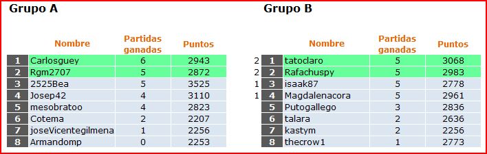 Deja un comentarioEn está página se irán publicando los resultados de las diferentes partidas, siendo el vencedor el encargado de hacerlo, insertando un COMENTARIO en la parte inferior de la pantalla (opción «Deja tu comentario«), indicando el nombre de los dos jugadores y los puntos obtenidos en la partida.