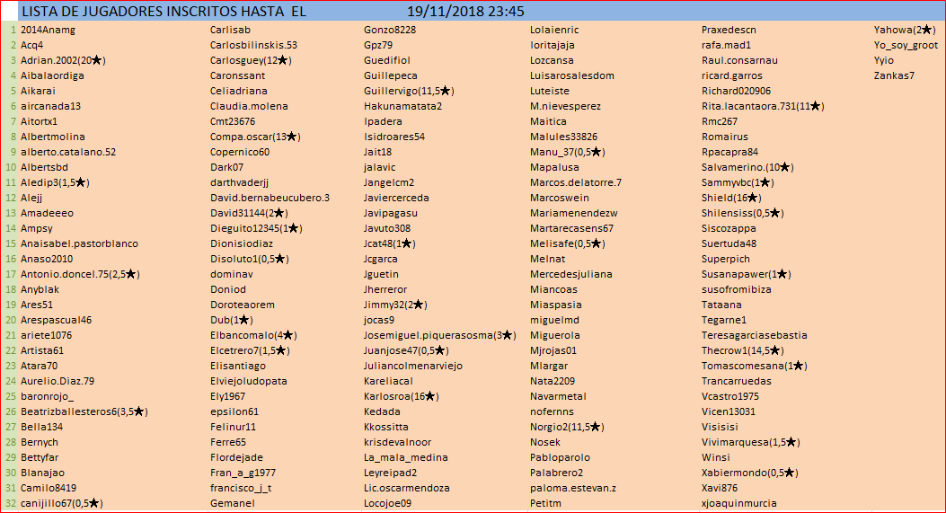 HASTA EL 15 DE ENERO O UN TOPE DE 80 JUGADORES
