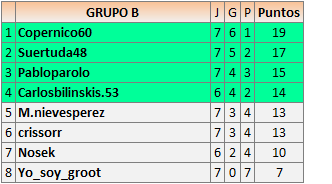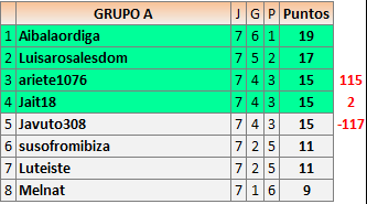 En está página se irán publicando los resultados de las diferentes partidas, siendo ambos jugadores responsables de subirlos o de comprobar que ya hayan sido publicados insertando un COMENTARIO en la parte inferior de la pantalla (opción “Deja tu comentario”), indicando el nombre de los dos jugadores y los puntos obtenidos en la partida.
