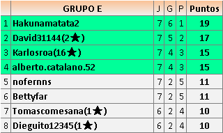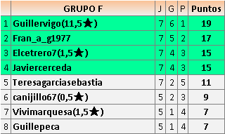 Deja un comentarioEn está página se irán publicando los resultados de las diferentes partidas, siendo ambos jugadores responsables de subirlos o de comprobar que ya hayan sido publicados insertando un COMENTARIO en la parte inferior de la pantalla (opción “Deja tu comentario”), indicando el nombre de los dos jugadores y los puntos obtenidos en la partida.