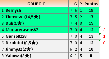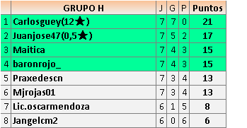 Deja un comentarioEn está página se irán publicando los resultados de las diferentes partidas, siendo ambos jugadores responsables de subirlos o de comprobar que ya hayan sido publicados insertando un COMENTARIO en la parte inferior de la pantalla (opción “Deja tu comentario”), indicando el nombre de los dos jugadores y los puntos obtenidos en la partida.