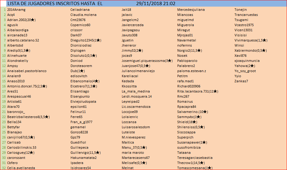 Deja un comentarioInicio de torneo: 1 Diciembre