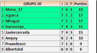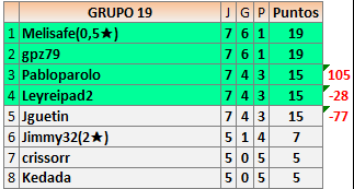 Deja un comentarioEn está página se irán publicando los resultados de las diferentes partidas, siendo ambos jugadores responsables de subirlos o de comprobar que ya hayan sido publicados insertando un COMENTARIO en la parte inferior de la pantalla (opción “Deja tu comentario”), indicando el nombre de los dos jugadores y los puntos obtenidos en la partida.