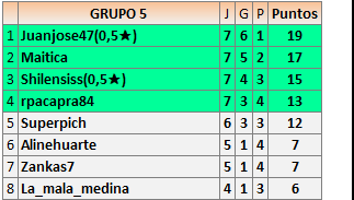 Deja un comentarioEn está página se irán publicando los resultados de las diferentes partidas, siendo ambos jugadores responsables de subirlos o de comprobar que ya hayan sido publicados insertando un COMENTARIO en la parte inferior de la pantalla (opción “Deja tu comentario”), indicando el nombre de los dos jugadores y los puntos obtenidos en la partida.
