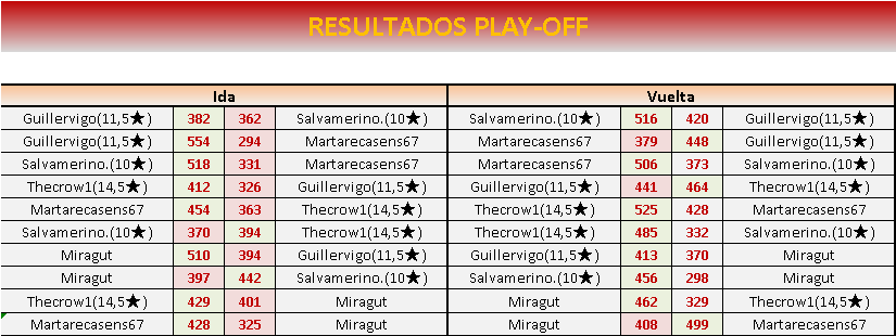 Fin PLAY OFF VUELTA: 18 de febrero a las 21:00