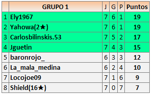 Deja un comentarioEn está página se irán publicando los resultados de las diferentes partidas, siendo ambos jugadores responsables de subirlos o de comprobar que ya hayan sido publicados insertando un COMENTARIO en la parte inferior de la pantalla (opción “Deja tu comentario”), indicando el nombre de los dos jugadores y los puntos obtenidos en la partida.