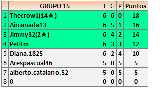 Deja un comentarioEn está página se irán publicando los resultados de las diferentes partidas, siendo ambos jugadores responsables de subirlos o de comprobar que ya hayan sido publicados insertando un COMENTARIO en la parte inferior de la pantalla (opción “Deja tu comentario”), indicando el nombre de los dos jugadores y los puntos obtenidos en la partida.