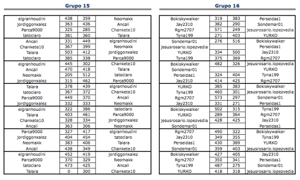 Deja un comentarioEn está página se irán indicando los resultados de las diferentes partidas. Lo único que tienes que hacer es insertar un comentario en la parte inferior de la pantalla (“Deja tu comentario”) indicando el nombre de los dos usuarios y los puntos obtenidos por ambos en la partida. El vencedor de cada partida será el encargado de comunicar el resultado en este apartado.