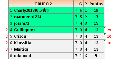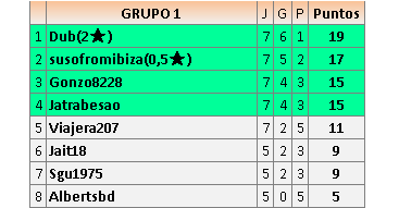 Deja un comentarioEn está página se irán publicando los resultados de las diferentes partidas, siendo ambos jugadores responsables de subirlos o de comprobar que ya hayan sido publicados insertando un COMENTARIO en la parte inferior de la pantalla (opción “Deja tu comentario”), indicando el nombre de los dos jugadores y los puntos obtenidos en la partida.