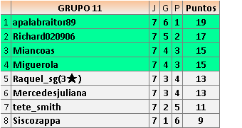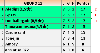 Deja un comentarioEn está página se irán publicando los resultados de las diferentes partidas, siendo ambos jugadores responsables de subirlos o de comprobar que ya hayan sido publicados insertando un COMENTARIO en la parte inferior de la pantalla (opción “Deja tu comentario”), indicando el nombre de los dos jugadores y los puntos obtenidos en la partida.