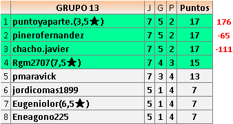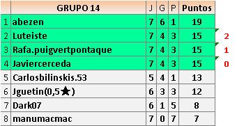Deja un comentarioEn está página se irán publicando los resultados de las diferentes partidas, siendo ambos jugadores responsables de subirlos o de comprobar que ya hayan sido publicados insertando un COMENTARIO en la parte inferior de la pantalla (opción “Deja tu comentario”), indicando el nombre de los dos jugadores y los puntos obtenidos en la partida.