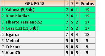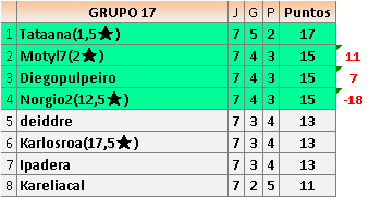 Deja un comentarioEn está página se irán publicando los resultados de las diferentes partidas, siendo ambos jugadores responsables de subirlos o de comprobar que ya hayan sido publicados insertando un COMENTARIO en la parte inferior de la pantalla (opción “Deja tu comentario”), indicando el nombre de los dos jugadores y los puntos obtenidos en la partida.