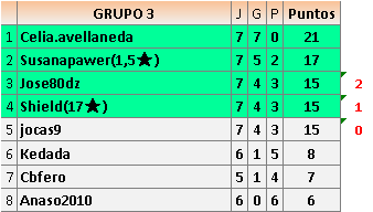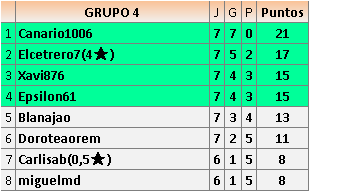 Deja un comentarioEn está página se irán publicando los resultados de las diferentes partidas, siendo ambos jugadores responsables de subirlos o de comprobar que ya hayan sido publicados insertando un COMENTARIO en la parte inferior de la pantalla (opción “Deja tu comentario”), indicando el nombre de los dos jugadores y los puntos obtenidos en la partida.