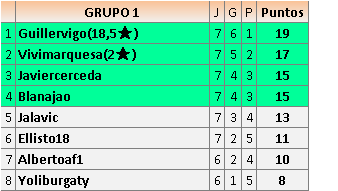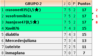 Deja un comentarioEn está página se irán publicando los resultados de las diferentes partidas, siendo ambos jugadores responsables de subirlos o de comprobar que ya hayan sido publicados insertando un COMENTARIO en la parte inferior de la pantalla (opción “Deja tu comentario”), indicando el nombre de los dos jugadores y los puntos obtenidos en la partida.