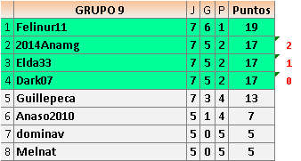 Deja un comentarioEn está página se irán publicando los resultados de las diferentes partidas, siendo ambos jugadores responsables de subirlos o de comprobar que ya hayan sido publicados insertando un COMENTARIO en la parte inferior de la pantalla (opción “Deja tu comentario”), indicando el nombre de los dos jugadores y los puntos obtenidos en la partida.