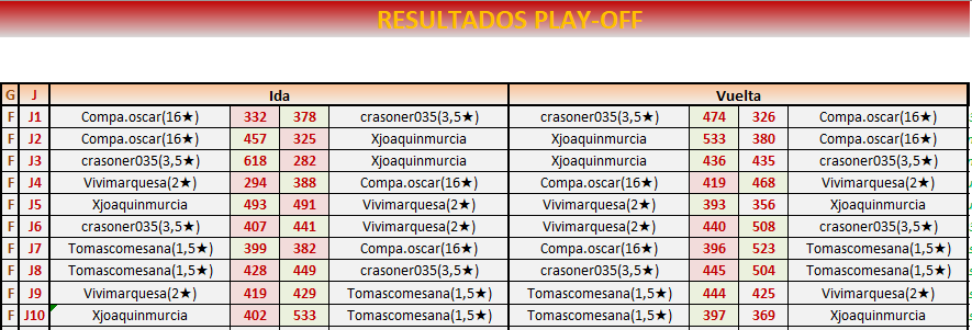 Fin PLAY OFF IDA: 29 de JUNIO a las 21:00
