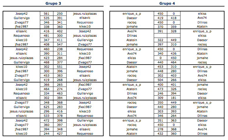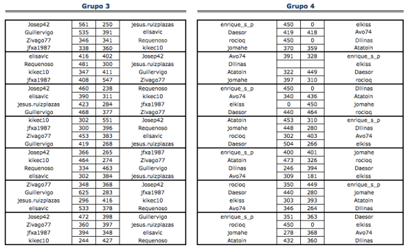 En está página se irán indicando los resultados de las diferentes partidas. Lo único que tienes que hacer es insertar un comentario en la parte inferior de la pantalla (“Deja tu comentario”) indicando el nombre de los dos usuarios y los puntos obtenidos por ambos en la partida. El vencedor de cada partida será el encargado de comunicar el resultado en este apartado.