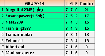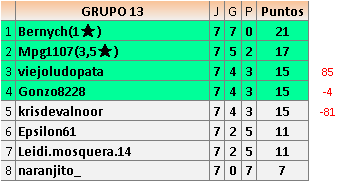 En está página se irán publicando los resultados de las diferentes partidas, siendo ambos jugadores responsables de subirlos o de comprobar que ya hayan sido publicados insertando un COMENTARIO en la parte inferior de la pantalla (opción “Deja tu comentario”), indicando el nombre de los dos jugadores y los puntos obtenidos en la partida.