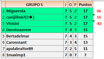 Deja un comentarioEn está página se irán publicando los resultados de las diferentes partidas, siendo ambos jugadores responsables de subirlos o de comprobar que ya hayan sido publicados insertando un COMENTARIO en la parte inferior de la pantalla (opción “Deja tu comentario”), indicando el nombre de los dos jugadores y los puntos obtenidos en la partida.