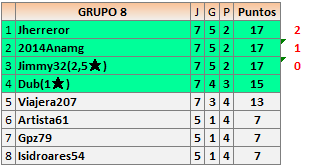 En está página se irán publicando los resultados de las diferentes partidas, siendo ambos jugadores responsables de subirlos o de comprobar que ya hayan sido publicados insertando un COMENTARIO en la parte inferior de la pantalla (opción “Deja tu comentario”), indicando el nombre de los dos jugadores y los puntos obtenidos en la partida.