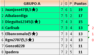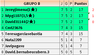 Deja un comentarioEn está página se irán publicando los resultados de las diferentes partidas, siendo ambos jugadores responsables de subirlos o de comprobar que ya hayan sido publicados insertando un COMENTARIO en la parte inferior de la pantalla (opción “Deja tu comentario”), indicando el nombre de los dos jugadores y los puntos obtenidos en la partida.