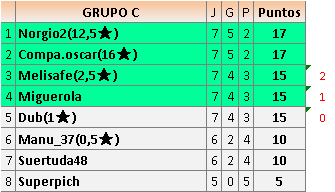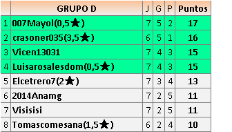 Deja un comentarioEn está página se irán publicando los resultados de las diferentes partidas, siendo ambos jugadores responsables de subirlos o de comprobar que ya hayan sido publicados insertando un COMENTARIO en la parte inferior de la pantalla (opción “Deja tu comentario”), indicando el nombre de los dos jugadores y los puntos obtenidos en la partida.