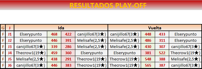 Fin PLAY OFF VUELTA: 13 de SEPTIEMBRE a las 21:00