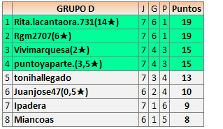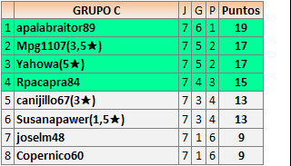 Deja un comentarioEn está página se irán publicando los resultados de las diferentes partidas, siendo ambos jugadores responsables de subirlos o de comprobar que ya hayan sido publicados insertando un COMENTARIO en la parte inferior de la pantalla (opción “Deja tu comentario”), indicando el nombre de los dos jugadores y los puntos obtenidos en la partida.